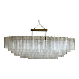 Zeitgenössischer ovaler Kronleuchter aus gehämmertem "Listelli" Muranoglas