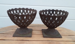 2 Brocante Gartenvasen aus Gusseisen, 17 cm hoch