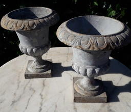 2 Brocante-Gartenvasen aus Gusseisen, 25 cm hoch