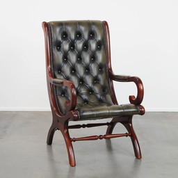 Grüner Vintage-Chesterfield-Sessel aus Rindsleder