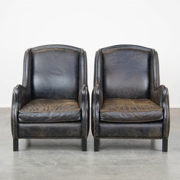 Clubsessel aus Schafsleder mit festem Sitzkissen