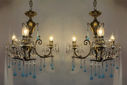 Satz von 2 opal azurblauen Teardrop-Kronleuchtern