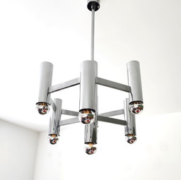 Mid Century Kronleuchter In Chrom Von Sciolari Für BoulangerMid Century Kronleuchter In Chrom Von Sciolari Für Boulanger