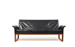 Dänisches schwarzes Ledersofa in Teak und Leder, 1960er Jahre