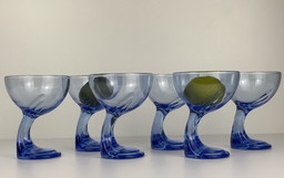 4 Vintage Kristall Wein Gläser Blau Floral 80er Blau Azur Hellblau Azur
