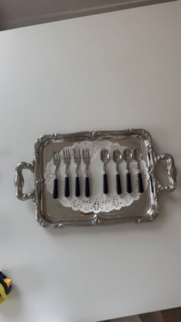 Vintage Edelstahl Muschelschale mit kobaltblauem Glaseinsatz - Kaviar oder Butter Server
