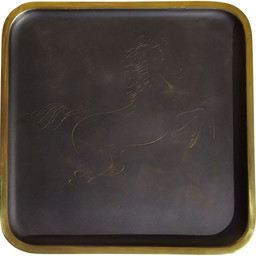 Van Nelle Tablett - goldfarbenes Metall, ca. 1950-60er Jahre