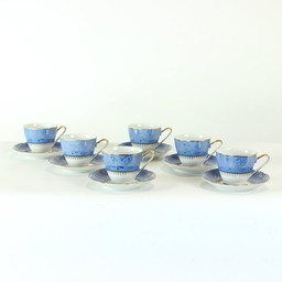 Service Coquetier Bleu Cobalt et Blanc Fayence Um 1900 Atelier Georges Dreyfus