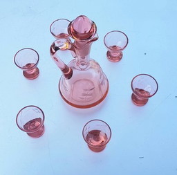 Jugendstil-Karaffe aus rosa Kristallglas mit 6 Gläsern, 1910, 7er-Set