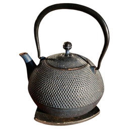 Vintage-Teekanne aus Gusseisen mit Noppenstruktur, japanischer Tetsubin-Stil, mit Untersetzer - 2C31Vintage-Teekanne aus Gusseisen mit Noppenstruktur, japanischer Tetsubin-Stil, mit Untersetzer - 2C31
