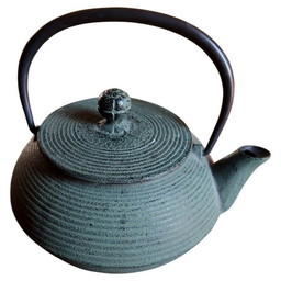 Vintage grüne Gusseisen-Teekanne, japanischer Tetsubin-Stil, gerippt - 2C32Vintage grüne Gusseisen-Teekanne, japanischer Tetsubin-Stil, gerippt - 2C32