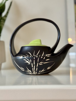 Teekanne im japanischen Stil aus Keramik mit Bambusmotiv - Bat Trang VietnamTeekanne im japanischen Stil aus Keramik mit Bambusmotiv - Bat Trang Vietnam