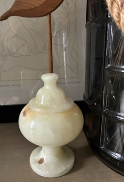 Italian onyx jewelry box with sunburst motif / natural stone vide-poche