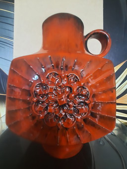 Vintage Bay Fat Lava jug, West Germany ceramic in beige with black-red-black design, 60s/70s, model number 71-25