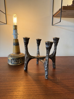 Bronze Vintage Candlestick For 3 Candles - Brutalist Design By Horst Dalbeck, Germany 1950 - 1970