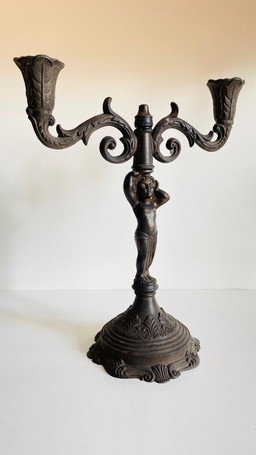 wrought iron candlestick with patinated heart motif