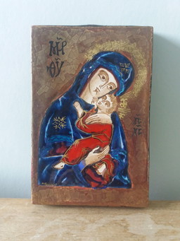 1 X Vintage Hand Painted Earthenware Terra Cotta Russel Tiglo 1944 Decorative Wall Sign
