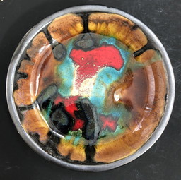 Lot De 3 Plats Type Caquelons En Céramique Vintage De Pornic, Décor Palmyre.