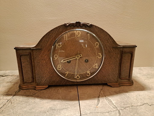 Antique Art Deco Wood Mantel Clock, Germany, 1930s