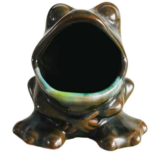 Vintage glazed Canadian ceramic frog with open mouth 1970'sVintage glazed Canadian ceramic frog with open mouth 1970's