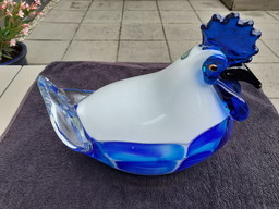 Murano Glass - Ashtray - Red and Blue, Geode-Like Shaped