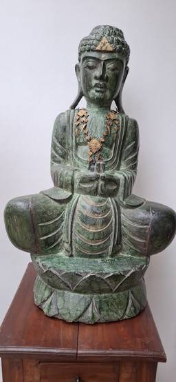 Ancienne sculpture chinoise en pierre serpentine verte jade fenghuang sculpté