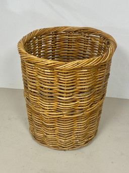 Rattan and brass basket and bowl in the style of Gabriela Crespi, Italy 1960-1970