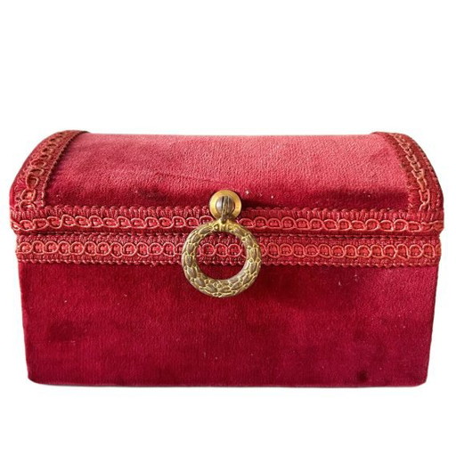 Antique burgundy jewelry box red velvet French jewelry box red velvet 1920's
