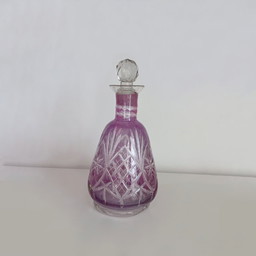 LICORERA O BOTE DE CRISTAL TALLADO DE COLOR LILA