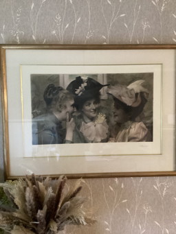 Rare Colorized Photo on Wooden Frame "Antique Carriage Kiss-Hand Scene" (circa 1900)