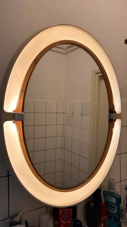 Vintage French Space Age Brown Plexiglas Wall Mirror Round
