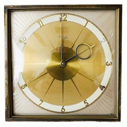 Mid-century brutalist brass zodiac desk clock with date calendar – 1960s West Germany