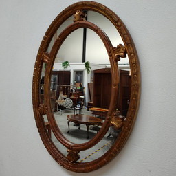 Vintage hand mirror, facet cut, Germany, brass with celluloid.