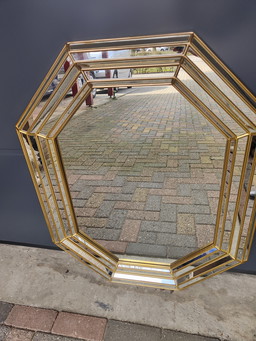 Gilded Octagonal Mirror by Deknudt Belgium Decorated with Smoked Mirror Glass