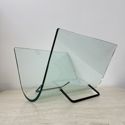 Vintage Magazine Rack of Brass and Glass Maison Bagues