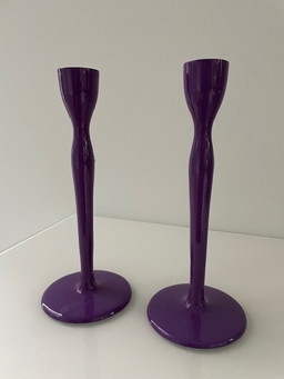 Tough Candlestick Of Sleek Black Steel With White Marble Base