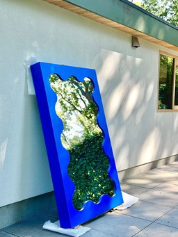 Vintage Mirror, Blue Metal, With Lighting. Italy 90's