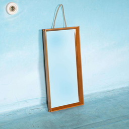Large beautiful 1960s oak wood backlit illuminated wall mirror - Made in Italy