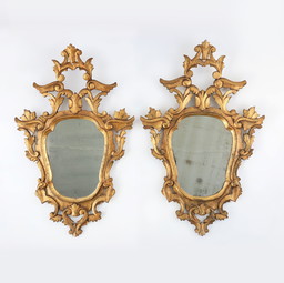 Pair of Two Venetian Rococo Giltwood Mirrors, ca. 1850 Italy