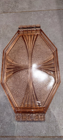 Artdeco style powder box pressed glass amber transparent 1950's