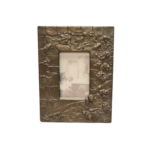 Art Nouveau embossed copper and wood Art Picture Frame, France ca. 1910