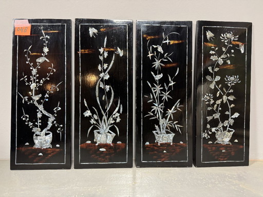 'The Four Seasons' - Set of Four Vietnamese Lacquer Panels with Mother-of-Pearl Inlay, Vietnam, 1970s.