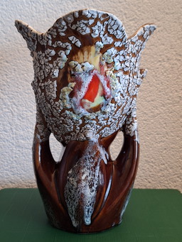 Vintage design modernist heavy handmade ceramic vase stylized fish