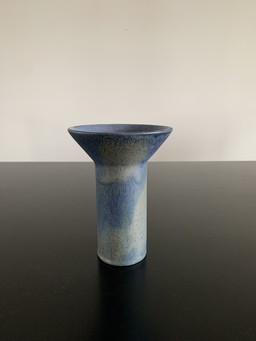 Ceramic vase with hand-painted blue stripesCeramic vase with hand-painted blue stripes