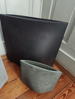1950s PLANT POT abstract sgraffito decor brown and beige