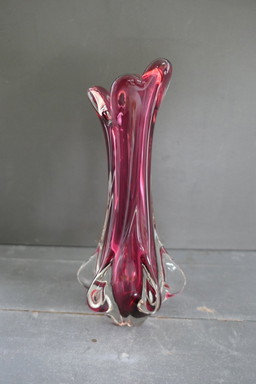 Vintage freeform vase immersed Murano glass Sommerso Poli Italy 1970s