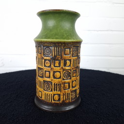 1960s bay keramik VASE relief flower decor green yellow black model 76 40 WGP