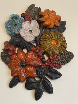 German Hand-Crafted Ceramic Wall Panel With Flowers By Karlsruher Majolika, 1960S