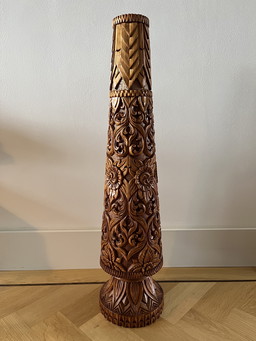 Brutalist vase/pitcher in solid wood and metal - mid-20th century
