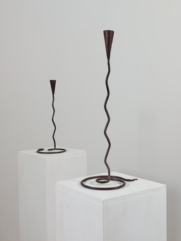 Pair of vintage metal postmodern candlesticks with spiral decorPair of vintage metal postmodern candlesticks with spiral decor